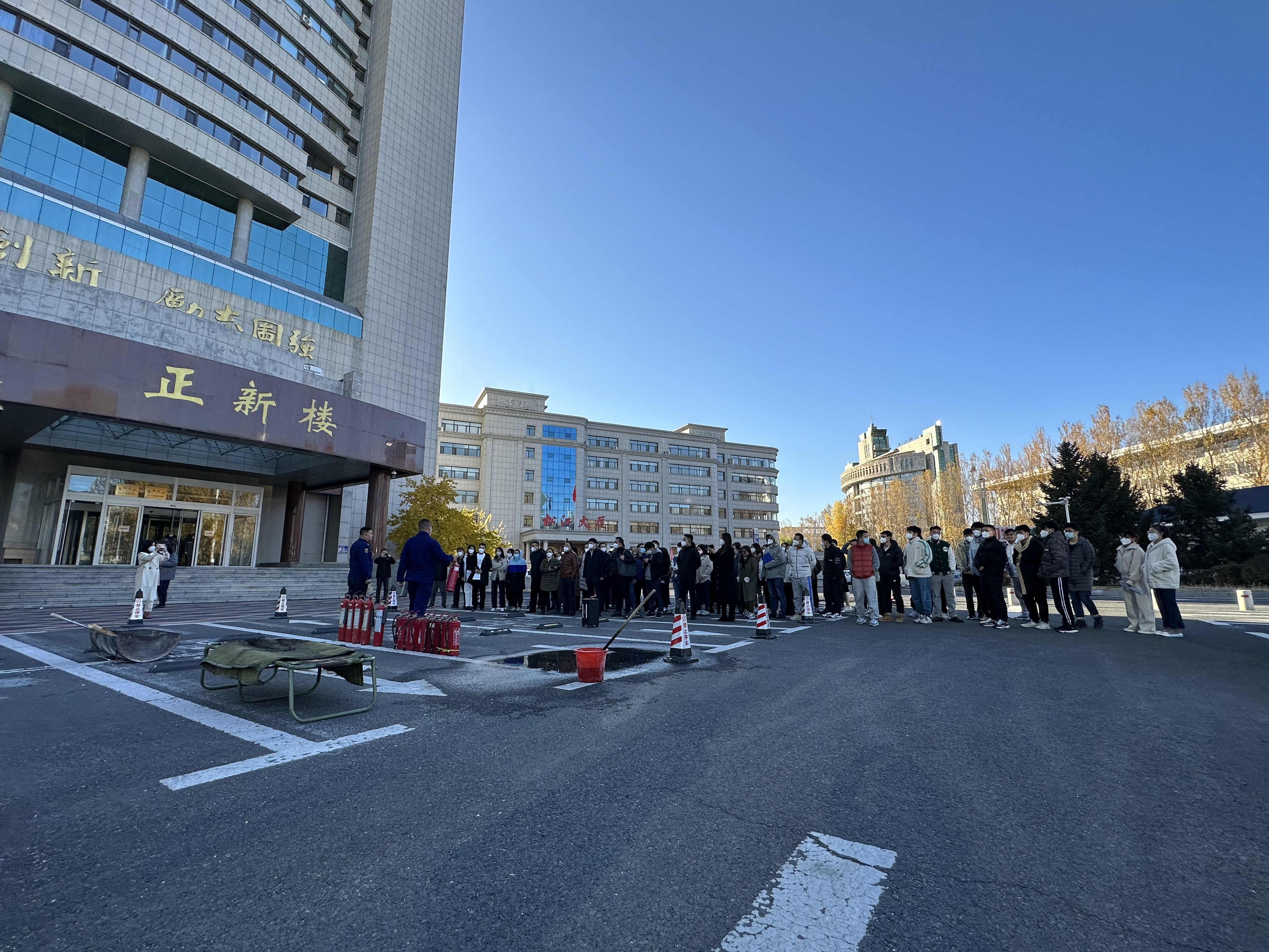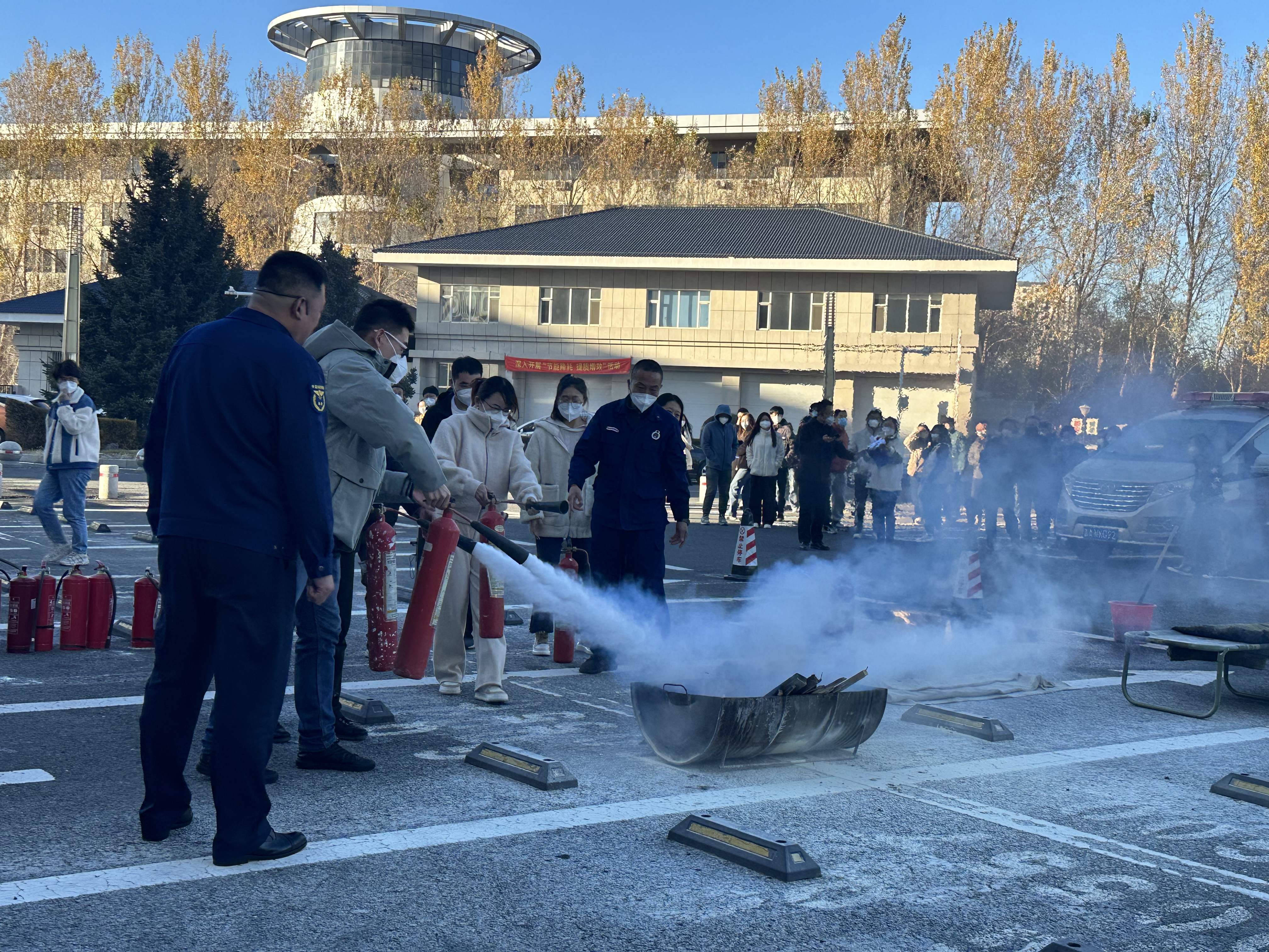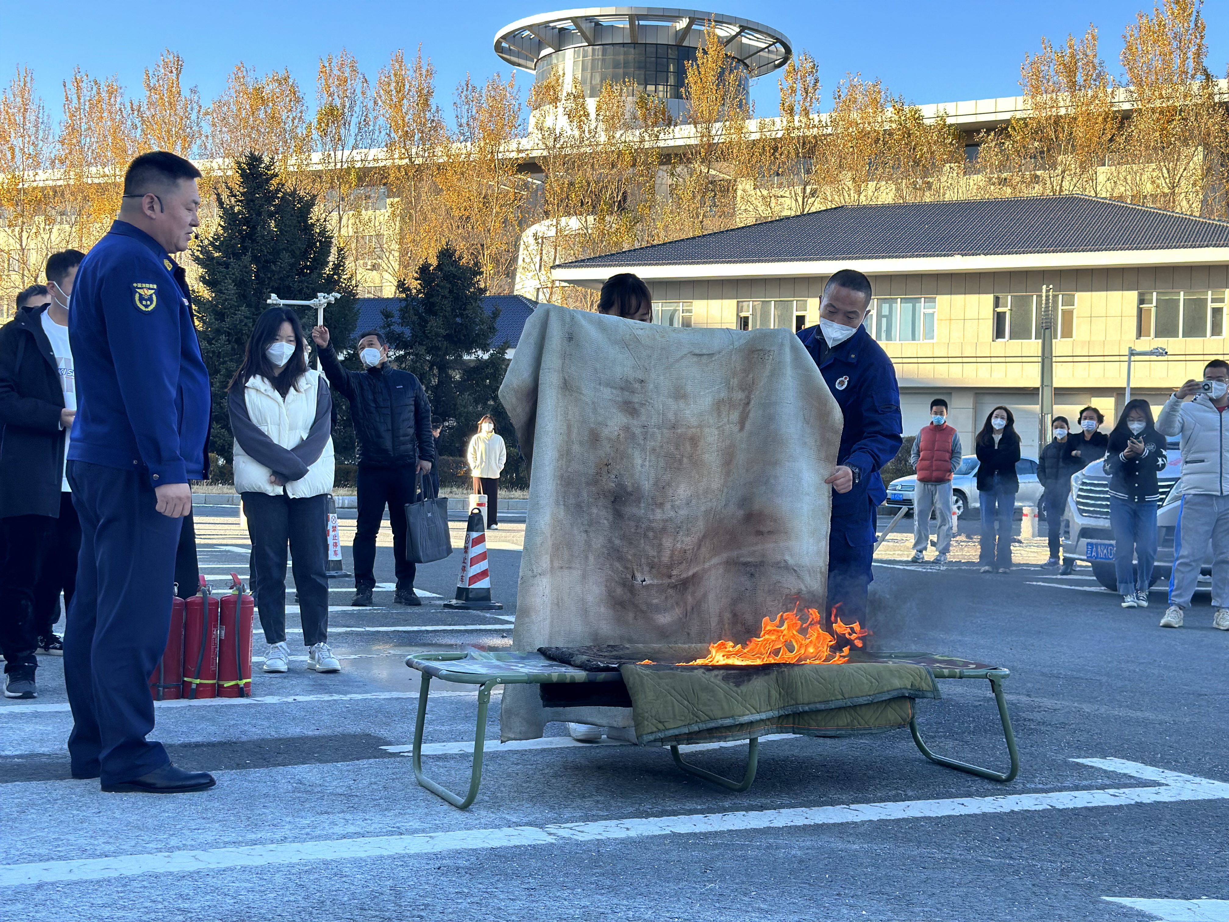 讲座结束后,3354cc金沙集团与人工智能学院在正新楼门前开展了火灾疏散逃生演练。保卫处在正新楼门前燃放了烟雾弹,随后警报响起,在消防广播的提示下,全体师生迅速从安全出口疏散撤离。全部人员撤离到安全区域后,在正新楼门前空地设置模拟火情,董立明为大家讲解了二氧化碳灭火器、干粉灭火器、灭火毯的使用方法及注意事项,并指导师生对初期火灾进行扑救。
