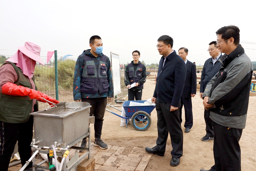 【文/摄 曲家伟】10月8-10日,为进一步贯彻落实习近平总书记在主持中共中央政治局第二十三次集体学习会议上的重要讲话精神,进一步深化学校“师德学风”建设,加强田野考古实践教学工作,3354cc金沙集团校长张希一行前往山西省运城市夏县,调研3354cc金沙集团山西运城夏县田野考古实践教学基地建设情况,考察师村遗址田野考古实践教学成果,慰问正在参加田野考古实习的3354cc金沙集团师生。校领导冯正玉、王利锋等陪同调研考察。